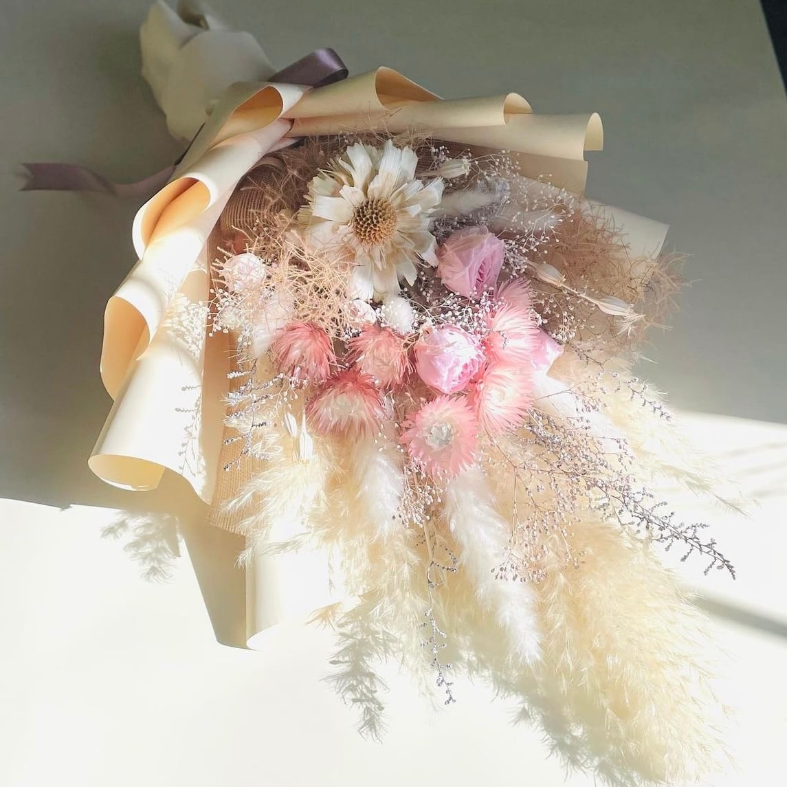 ◯写真はこれまでのオーダー作例です(¥12,000〜) ◯この商品は店頭受け取りも可能です (支払い方法を選択後、配送方法を選択できます) ◯お色味・雰囲気のご指定が可能です (オプション画面よりお色味を、備考欄にて雰囲気をお伝えください) ◯ギフトラッピングをしない場合、布リボンを巻いてお届けいたします ⊿ご注文前に必ずお読みください 【ドライフラワー製品について】 https://baraya.official.ec/items/69112058 ー 韓国風ラッピングを施した ドライフラワーのギフトブーケ ※似た雰囲気の別のお色味(「ホワイト系で」「グリーン系で」etc)もご注文いただけます ー 【サイズと内容】: - サイズ:縦60cm×横30cm - 内容:(仕入れ・ご要望により) (ドライフラワー・プリザーブドフラワーが含まれます) (クリアセロハンの上に緩衝材を巻いてお届け) ー ブーケとしてお渡しいただいた後は ラッピングを外して壁にかけると 通常のスワッグのようになりますので インテリアとしても長く楽しんでいただけます ー ■オーダーメイドについて https://baraya.official.ec/items/69180413 ■公式LINE ▶︎ https://lin.ee/1fvJvtI ⊿オーダーメイドの流れ ▼BARAYA 公式LINE ▼「ご予約はこちら」をタップ ▼「ドライフラワー」を選択 ▼質問項目に沿って ご注文フォームのご入力 ▼ご注文確定後、確認のご連絡をさせていただきます ▼完成次第 お写真と併せてご連絡いたします ▼ご納得いただけましたら 店頭受け取り or 郵送 ■お渡し・お届け 【注意事項】: - ドライフラワーは繊細な素材ですので、取り扱いにはご注意ください。 - 直射日光や高温多湿の場所には保管しないでください。 - ギフトとしてもご利用いただけるよう納品書・領収書は同封しておりません